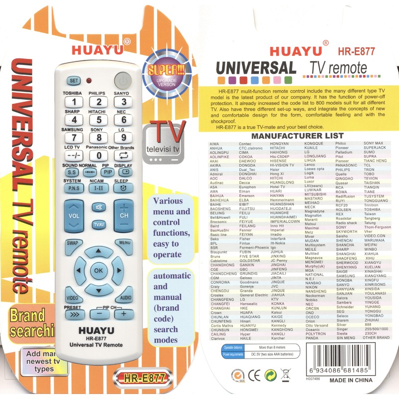 Инструкция по настройке универсального пульта Huayu HR-E877